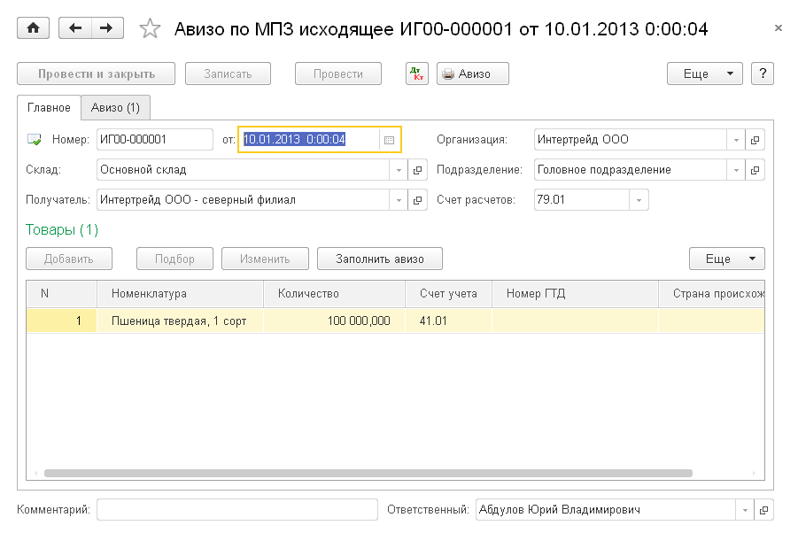 - Авизо по МПЗ
